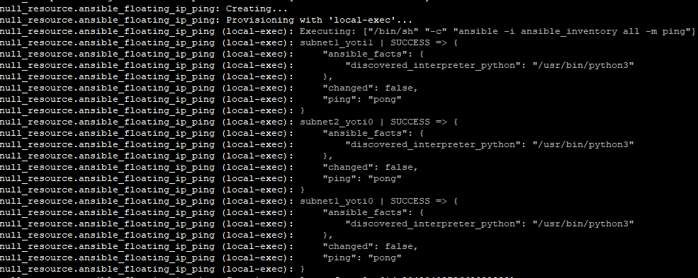 During the Terraform run the deployment host will run an Ansible ping command to test connectivity to the new Instances.